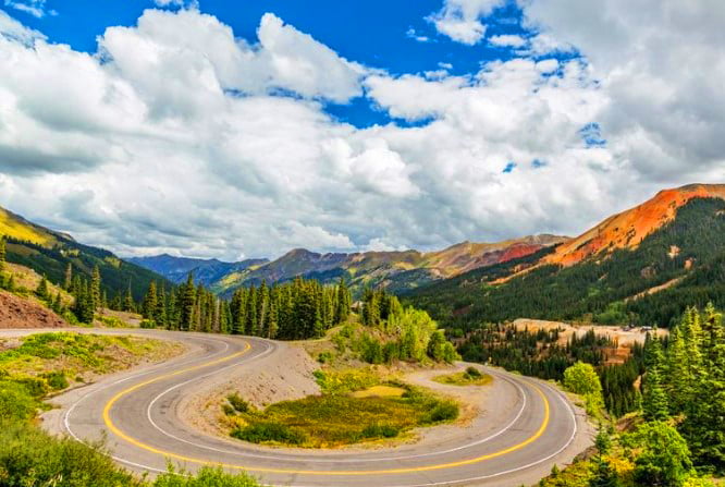 The San Juan Skyway is a scenic byway that passes through the San Juan Mountains in southwest Colorado. The route is known for its stunning views of the mountains and forests, as well as its historic mining towns. The route is approximately 236 miles long and takes about 6 hours to drive.