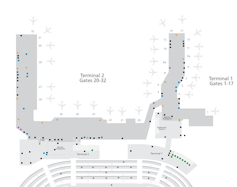 Travellers making a connection should be conscious of the time needed to transition from one terminal to another. While the distance is short, flight delays can affect your overall schedule. If you’re connecting between flights and time is tight, consider contacting your airline for the latest updates regarding gate assignments and flight status.